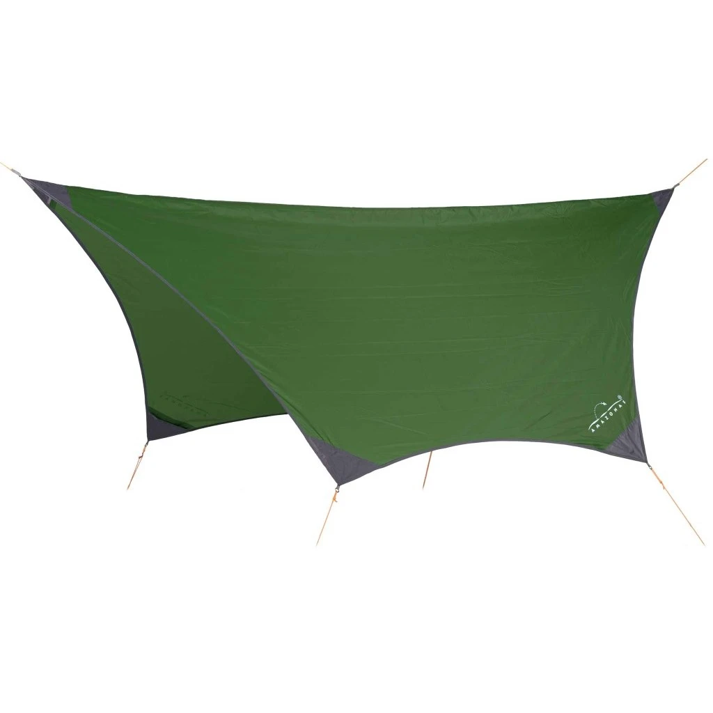 De is aangepast aan de afmetingen van de hangmat en maakt van elke hangmat een buitenbed. De Traveller Tarp wordt opgehangen aan de bevestigingspunten van de mat en afgespannen (haringen en lijnen met verstelbare karabijnhaken zijn inbegrepen). De trapeziumvormige snit van de tarp zorgt voor voldoende luchtcirculatie en beschermt toch tegen regen, zon en vallende bladeren. Alle afspanpunten hebben kleine zakken voor de lijnen. Robuust en veelzijdig – natuurlijk ook zonder hangmat.