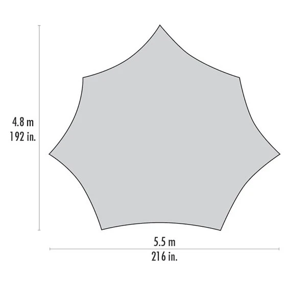 Deze uniek ontworpen en extreem sterke tenttent is geschikt voor elke camping. De creëert een open ruimte van 18 m² op de camping met bescherming tegen regen, wind en zon en is de ideale extra uitrusting voor groepen van twee tot 12 personen.