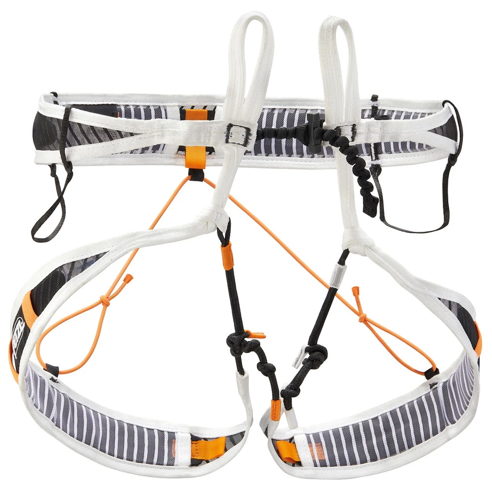 – Innovatief ontwerp zonder gesp (Petzl patent). Een innovatief verstelsysteem vervangt de metalen gesp en maakt een snelle, eenvoudige aanpassing van de heupgordel mogelijk. De beenlussen kunnen worden aangepast met een ankersteek.