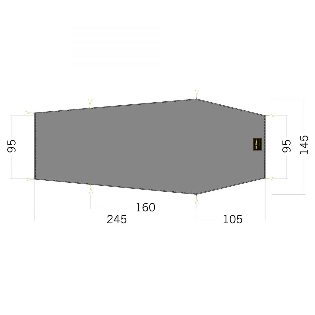 De tentonderlaag beschermt de tentvloer tegen beschadiging. Het is aangepast aan de vloerafmetingen van de tent en kan op de hoeken worden bevestigd. Gemaakt van zeer lichtgewicht T-Cover Tex PRO.