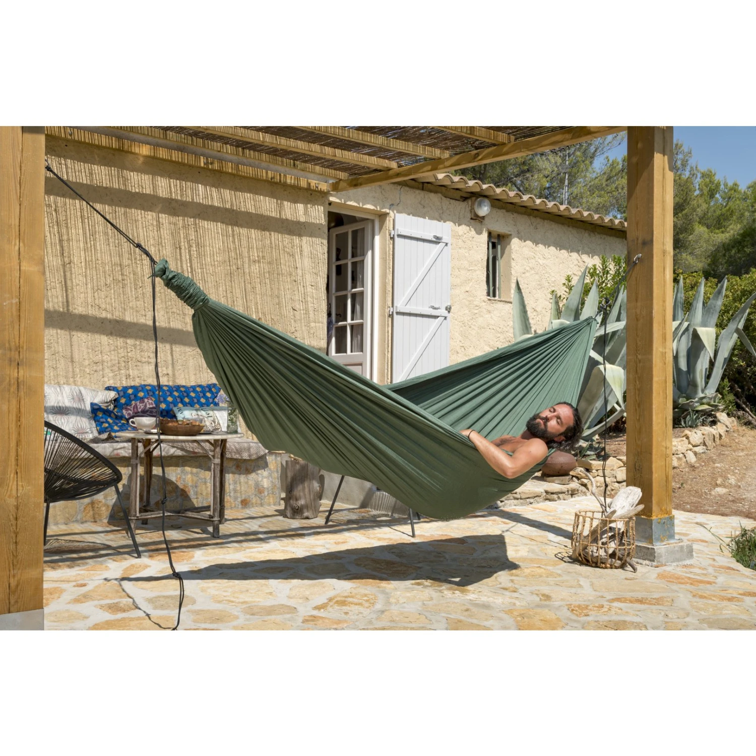 Dankzij de combinatie van geselecteerde vezels en een geavanceerde weeftechniek laat de stof een bijzonder zacht gevoel achter op de huid en kun je toch precies daar in de mat wegzakken waar je wilt. Het dikkere materiaal is ook robuuster en minder gevoelig voor UV-licht, wat de levensduur van de hangmat aanzienlijk verlengt. De rekbaarheid is ook precies goed en met de geïntegreerde hoes kun je de hangmat gemakkelijk buiten laten hangen, terwijl hij tegelijkertijd alle ogen trekt met zijn elegante en eenvoudige stijl. De Home Line 320 hangmat kan worden gebruikt door twee of meer personen, maar je kunt hem natuurlijk ook helemaal voor jezelf opeisen!