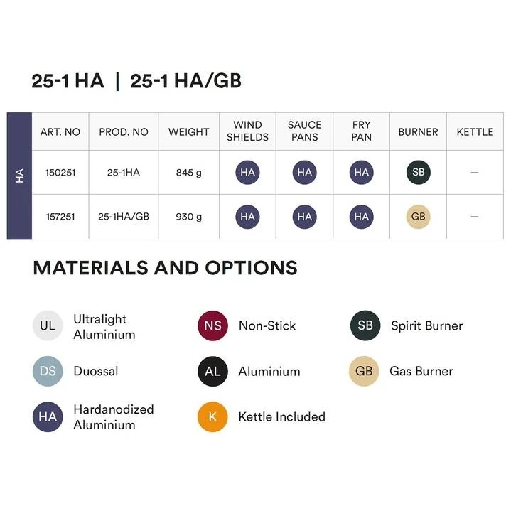 Kenmerken van de Storm Cooker 25-1 HA – Storm Stove Set met Spirit Brander