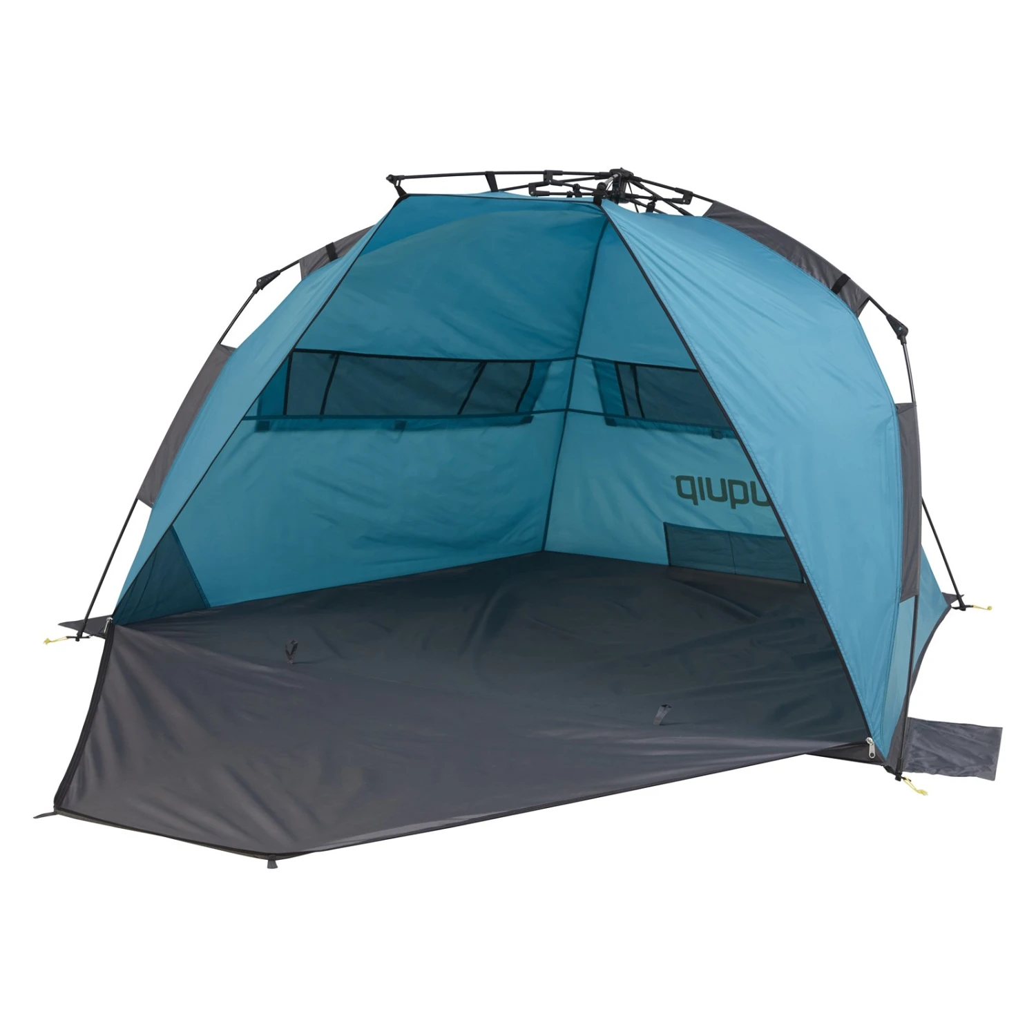 The lockable beach tent “Speedy” has an innovative quick-assembly mechanism. This means that “Speedy” is fully ready for use after just a few seconds. Thanks to the three closable ventilation windows with mosquito net insert, sufficient air circulation is always ensured even when the front is closed. Sand pockets and pegs provide the necessary stability, even in stronger winds.
