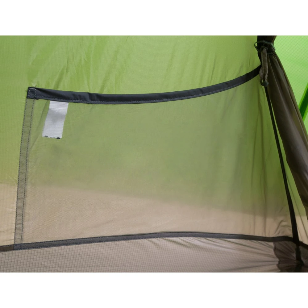 Innertent Mapping: Different materials ensure an excellent tent microclimate. Mosquito mesh ventilation can be closed or opened as needed; fine mesh allows water vapor to pass through,