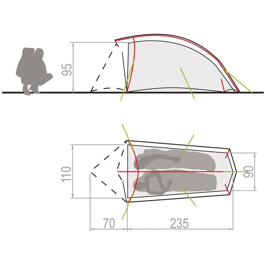 - Material flysheet: 100% Polyamide 20 D Ripstop both sides Silicone coated 3.000 mm
